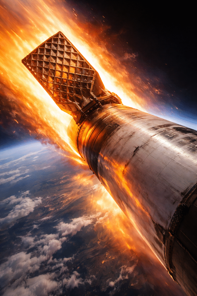 When Falcon 9’s first stage returns from space, it slams into Earth’s atmosphere at hypersonic speeds—often over Mach 10. This phase is one of the most dangerous moments of any space mission.